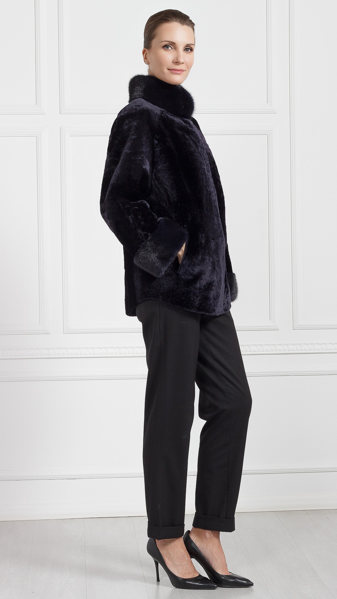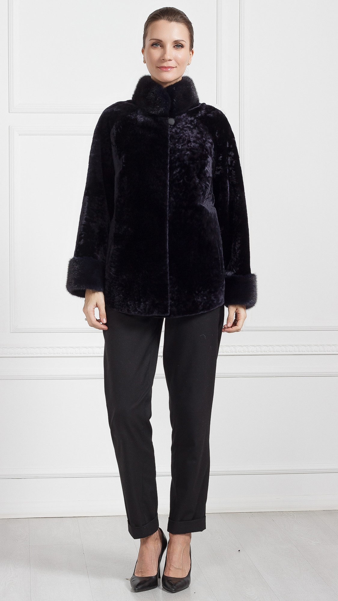 Куртка из овчины, отделка норка